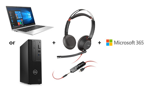With BT’s current bundle solution, receive a copy of Microsoft 365 or Office and a Poly Blackwire 5220 headset when you purchase a Windows 10 Pro desk solution1.