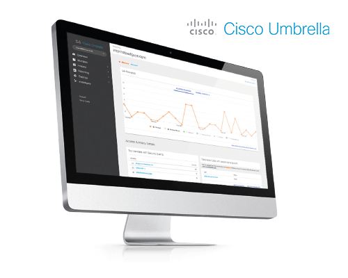 As the industry’s first Secure Internet Gateway in the cloud, Cisco Umbrella provides the first line of defence against threats online. Umbrella is delivered from the cloud, so it’s the easiest way to protect all of your users in minutes.