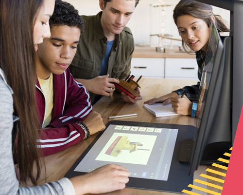 Interactive whiteboards and eBoards from Smart and iiyama are a great way to collaborate naturally in your classroom. Graphic design is also key to delivering powerful messages, whether describing an initial idea or promoting a finished product. Using the HP Sprout computer, students can practice developing compelling communications materials.